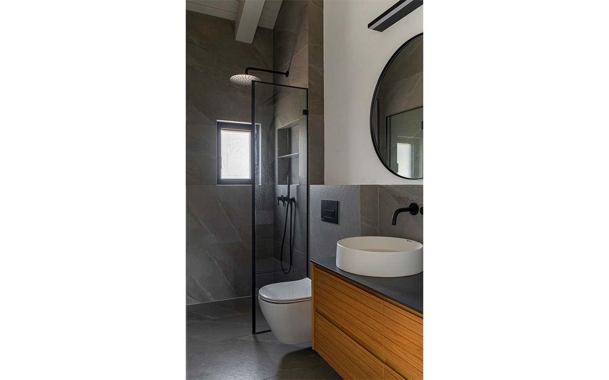 שיפוץ בית פרטי עבור משפחה שגרה בבית שנים רבות, הם רצו לרענן את הבית ולחיות בבית שעליו חלמו. החלל הציבורי של הבית התפרש על שני מפלסים שונים, הגבהנו את החלק הנמוך, הרחבנו את הבית ופתחנו אותו צפונה לאיזור החצר. החצר עוטפת את הבית בירוק, מציצה מכל פינה ומכניסה את הקסם שלה אל הפנים. היה לנו חשוב לשים דגש בין הפנים לחוץ ולמקסם את הפוטנציאל. בנוסף, השתמשנו באילוצי המבנה הקיים ויצרנו פתרונות קונסטרוקטיבים יצירתיים, לדוגמה הקורה העוברת בין הסלון והמטבח שבחרנו דווקא להדגיש אותה ולצבוע אותה בשחור. בעיצוב בחרנו בחומרים עוצמתיים שנותנים נוכחות רבה לחלל: בריקים, עץ אגוז אמריקאי, השימוש במתכת וקורת הפלדה. יחד עם העוצמה שהם משדרים הם משתלבים בצורה הרמונית ומייצרים ניקיון ושקט.