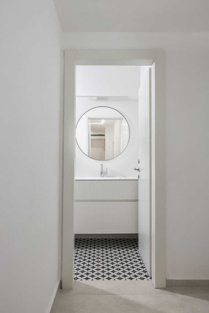 פרקט אלון טבעי בחדרים ממשיך את הקו ופשוט  שמזמין להוריד נעליים ולהרגיש בבית.נגרות ממשיכה את ההרמוניה בגוונים של  לבן, בז', ועץ.  ונגיעות שחורות קטנות — כמו תכשיט שמוסיף טאץ' של אלגנטיות.